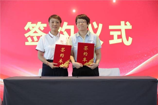 裴蕾与北京倍舒特科技发展有限公司周庆签署合作文件。